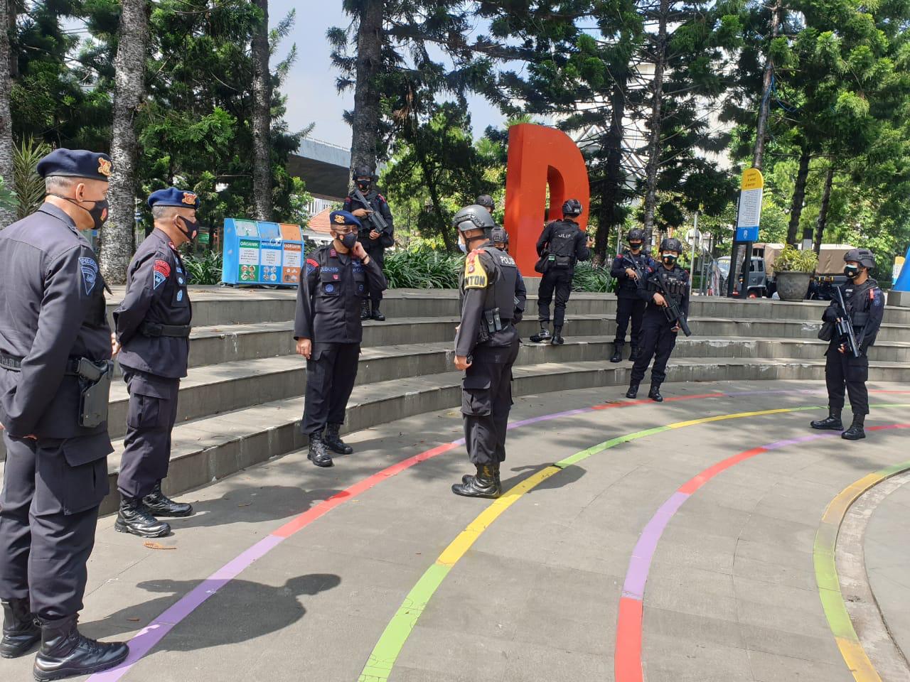 BANDUNG, INFOJAWARA.COM — Wadansat Brimob Polda Jabar AKBP Agung Danargito, S.I.K, M.Si., melakukan pengecekan kesiapan pengamanan Operasi Lilin Lodaya 2020 di sejumlah pos yang tersebar di berbagai lokasi wilayah Kota Bandung, Jawa Barat, Sabtu (26/12/2020).